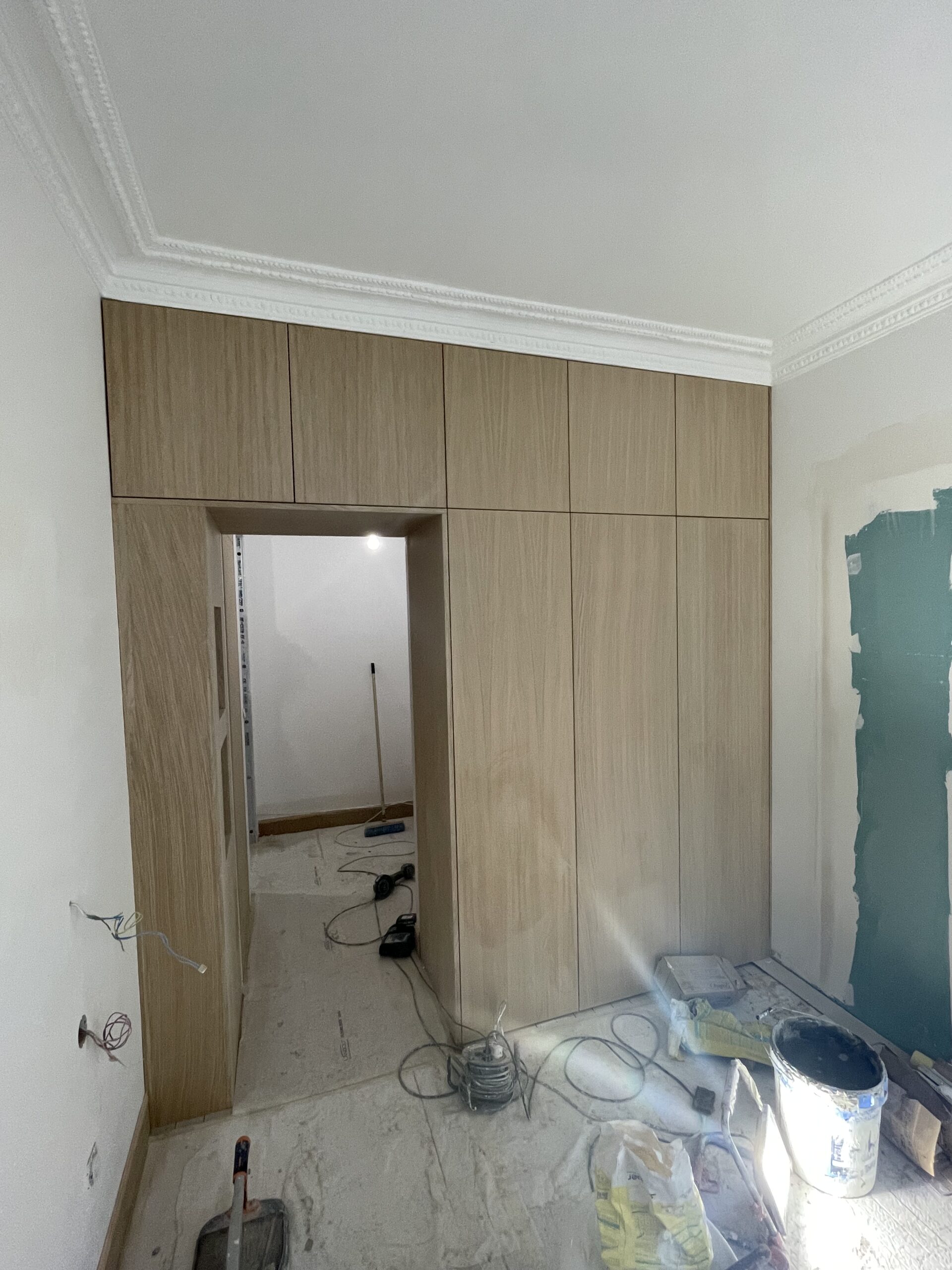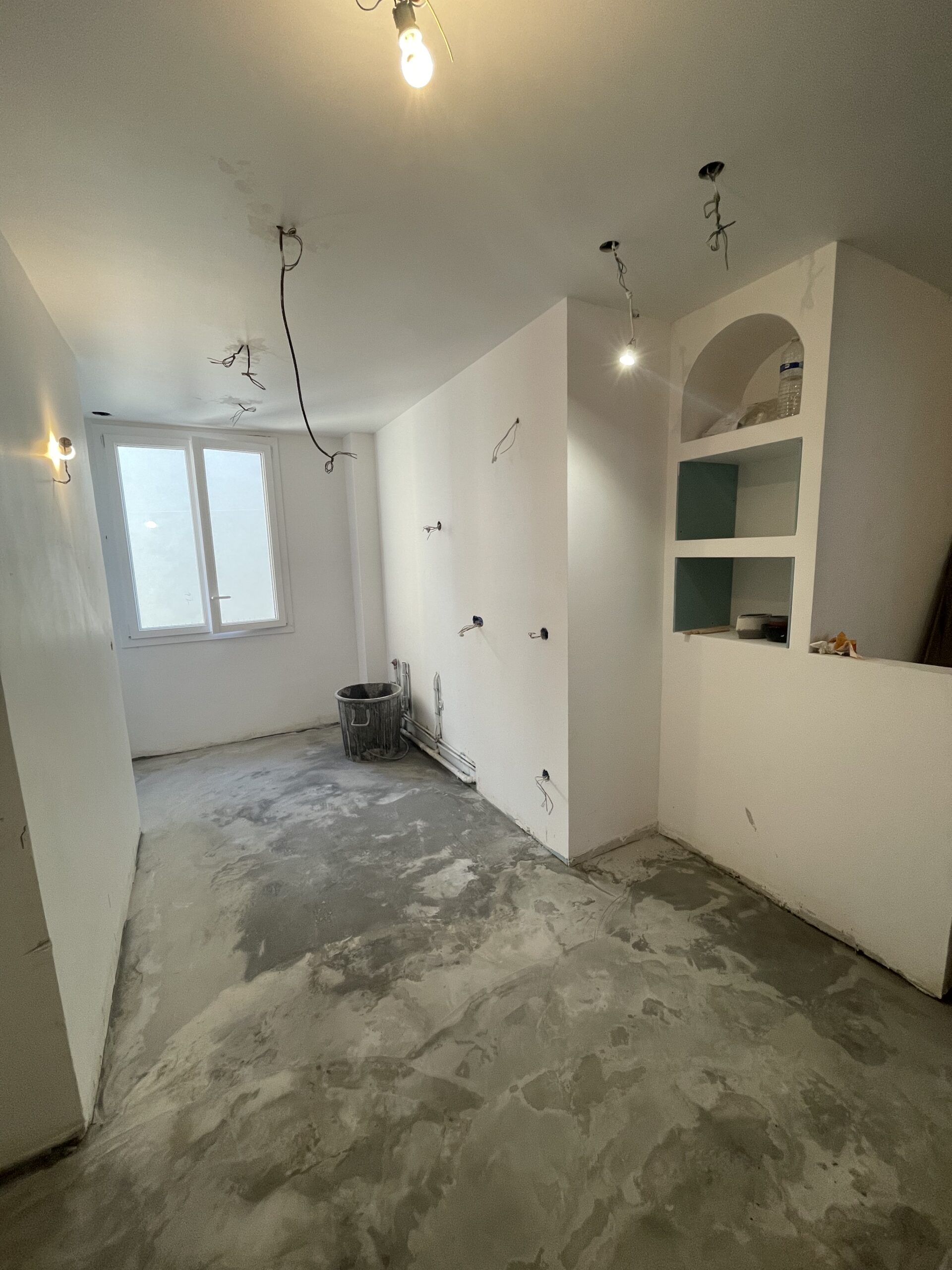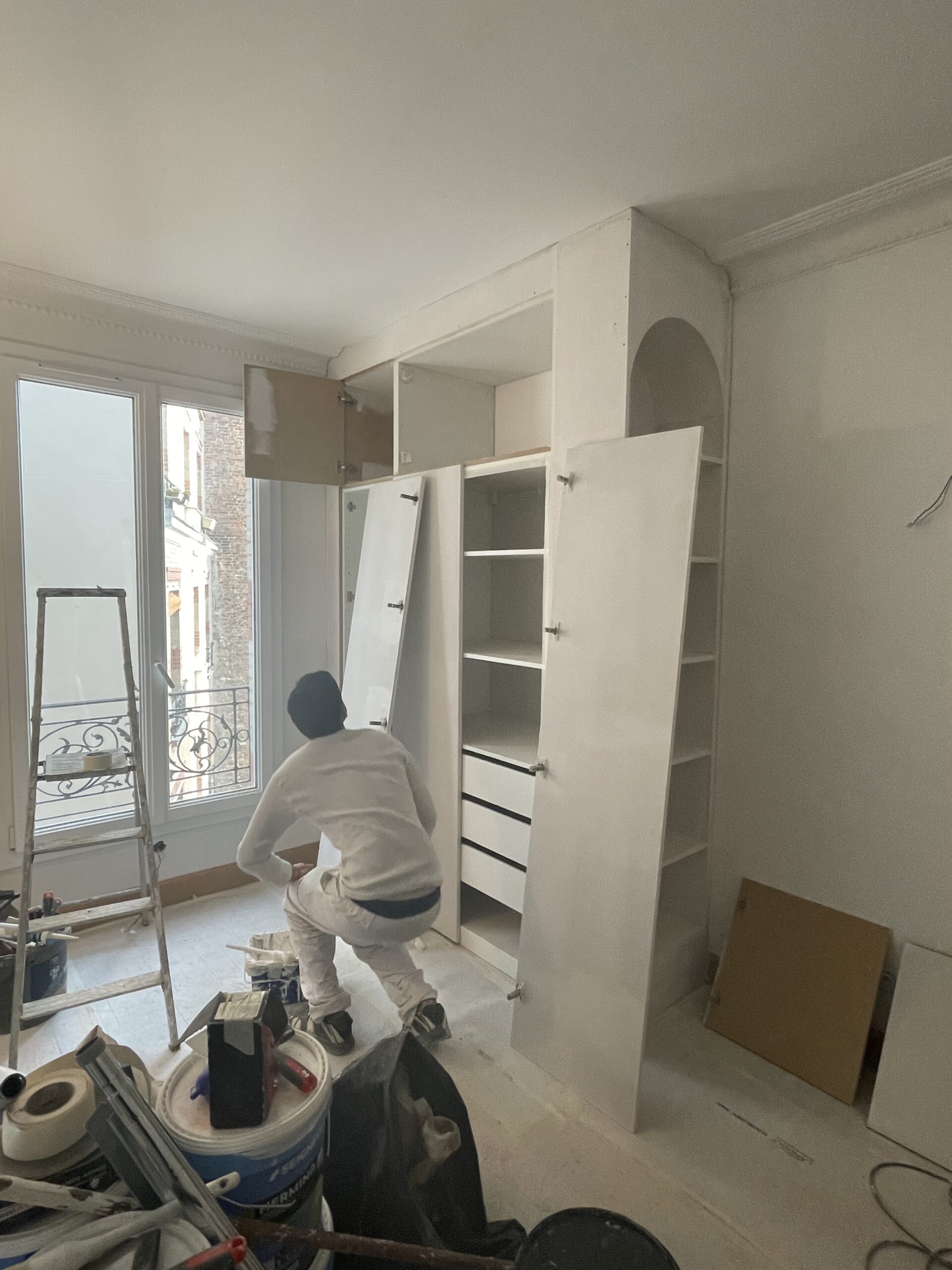 Au départ, un appartement haussmannien avec beaucoup de surface perdue. Le plan a été optimisé pour correspondre au mieux à la vie de cette famille, notamment avec la création d’une suite parentale, l’ajout d’une salle de bain, d’une vraie pièce buanderie et la fabrication de nombreuses menuiseries sur mesure.