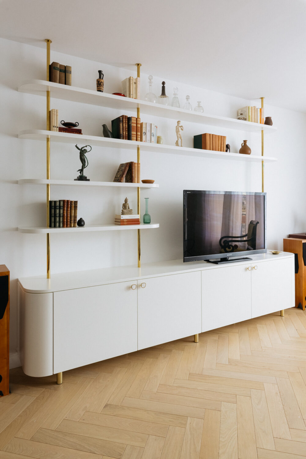 Bibliothèque sur mesure, bureau, dressing, meuble d’entrée, banquette, ou meuble multi-fonctions, après une prise de cotes chez vous et un échange précis sur vos besoins et vos envies, nous vous proposerons nos idées créatives et harmonieuses.