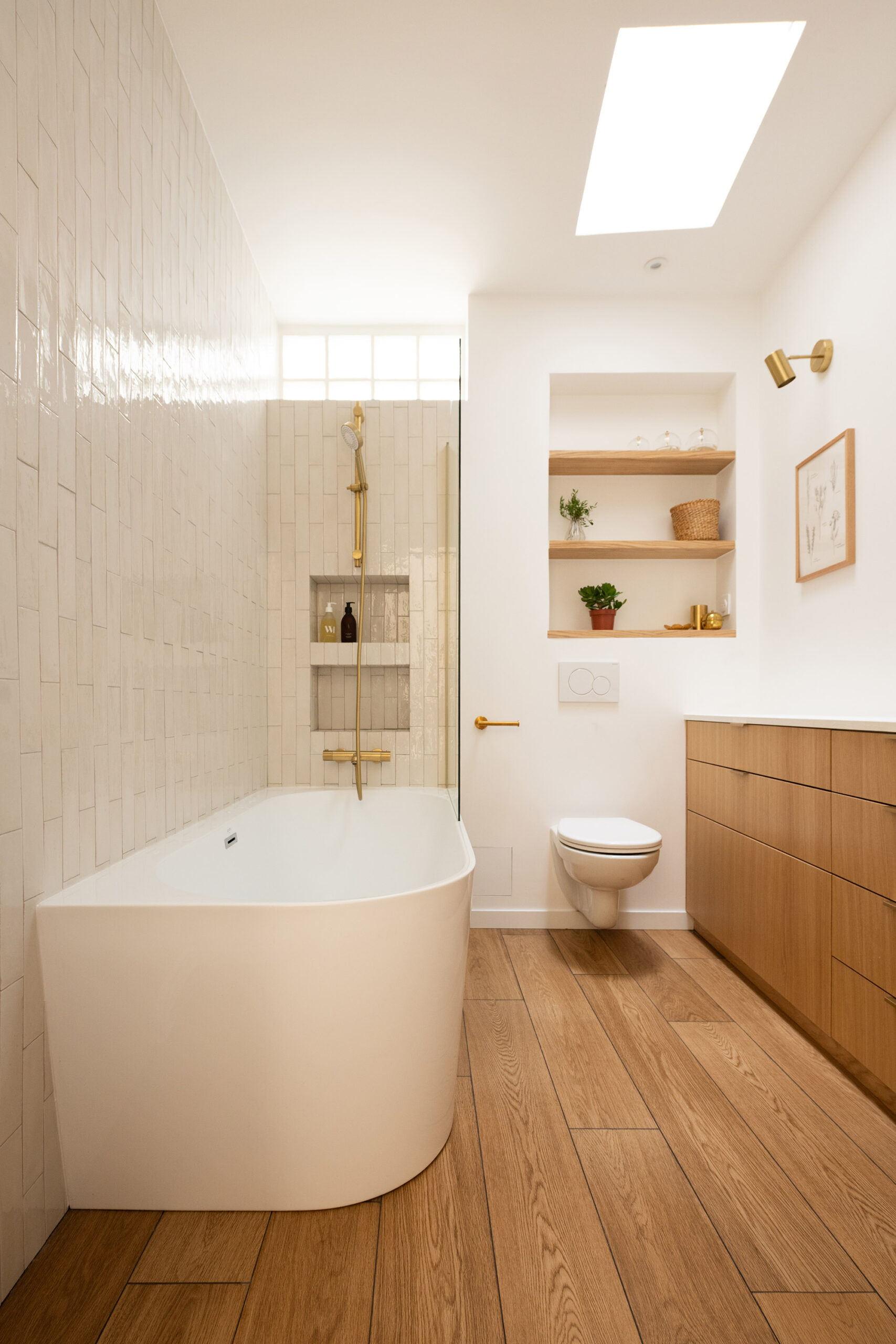 C’est le moment de développer le projet avec des plans et des 3D plus détaillés, d’élaborer les plans électriques et de choisir les matériaux en fonction de l’ambiance choisie. Nous vous présentons une première intention et vous accompagnons en showroom pour affiner la sélection. Nous vous proposons également une sélection de luminaires.